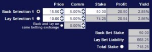 So fill or kill orders go in simultaneously on both exchanges. The bot sees what is matched and aims to balance for a risk free profit of £20. I’ve allowed for a commission of 5% in both exchanges. A yield of 2.85% in a second. And no risk – assuming you’re matched in both places. I’ll write more on this at another time. And if ever there was a good time to have an account with both Betdaq and Betfair it is now. But it will not last for long!