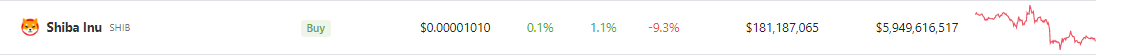 At the time of writing, SHIB was trading at $0.00001008, losing nearly 10% of its value. The meme coin shed 0.2% in the last 24 hours, data from crypto market tracker Coingecko shows.